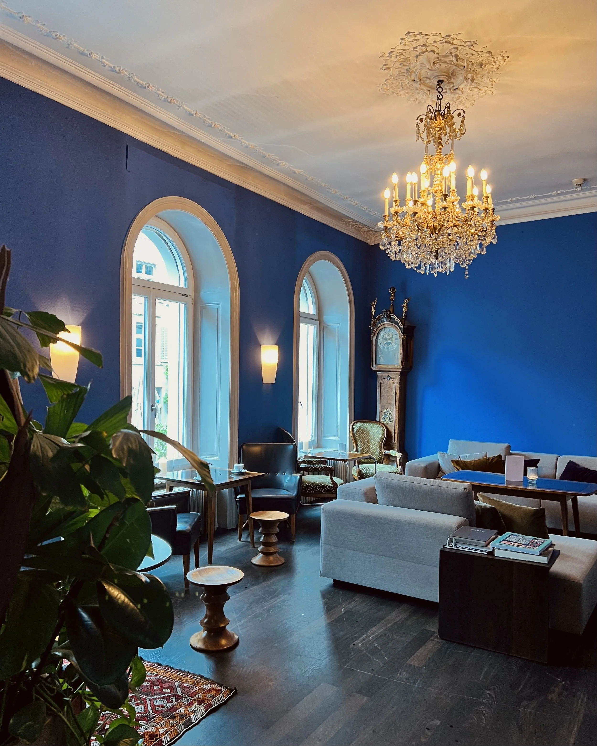 By chance, I had booked a room in one of the most traditional hotels in Basel and – as it turned out – one of the nicest hotels I have stayed in. Hotel Krafft is located on the banks of the Rhine. The old town is just a walk over a bridge away, making it the perfect accommodation from where to explore the city. Depending on the season, you can book rooms for extremely good prices (tipp: have a look at fair dates before deciding when to come). I stayed in a single room that immediately felt cozy to me. It was small, but had everything you need, including a small bathroom with a nice shower. Every floor has a common area by the staircase with couches, books and a small kitchenette providing you with water, tea, fruit and sweets. Herman Hesse wrote some parts of his book Steppenwolf in one of the rooms. Apparently, Basel was one of the writer’s favorite places, where he found quiet as well as inspiration. Upon entering the hotel lobby, I can understand why. Interior design elements in muted colors and blue reflect the Swiss closeness to nature as well as the Rhine being the heart of the city. The people of Basel love their river. One of the few things I learned about the city before staying there was that people bring their swimsuits to work in the summer and jump in the river as soon as they get out of the office. There are many shallow spots where you can let yourself float along.